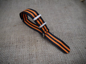 Our premium nylon watch strap in orange and black design. Made from high tensile strength nylon webbing, including a premium stainless steel buckle and stainless steel keepers. Our nylon on the premium slim STRP is silky smooth for a soft feel (yet strong!!) with a higher sheen than standard NATO straps. Our premium strap that rivals the big boys in quality.