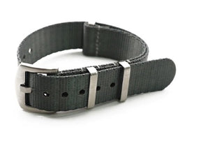 Our premium nylon watch strap in a solid medium grey. Made from high tensile strength nylon webbing with luxury hardware, including a premium stainless steel buckle and rectangular stainless steel keepers. Our nylon is heavy weaved for a soft feel (yet strong!!) with a higher sheen than standard NATO straps. Our premium strap that rivals the big boys in quality.