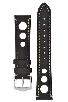 Watch Strap Hirsch Rally Leather - Black/White - 20mm est en stock et sera expédié dans 1 à 3 jours ouvrables.