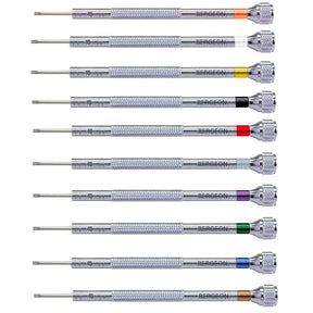 Elke maat wordt afzonderlijk verkocht, zodat u uw ideale set van Bergeon Schroevendraaiers kunt samenstellen. Perfect voor horlogemakers, reparatieprofessionals en enthousiastelingen die precisie en kwaliteit waarderen.